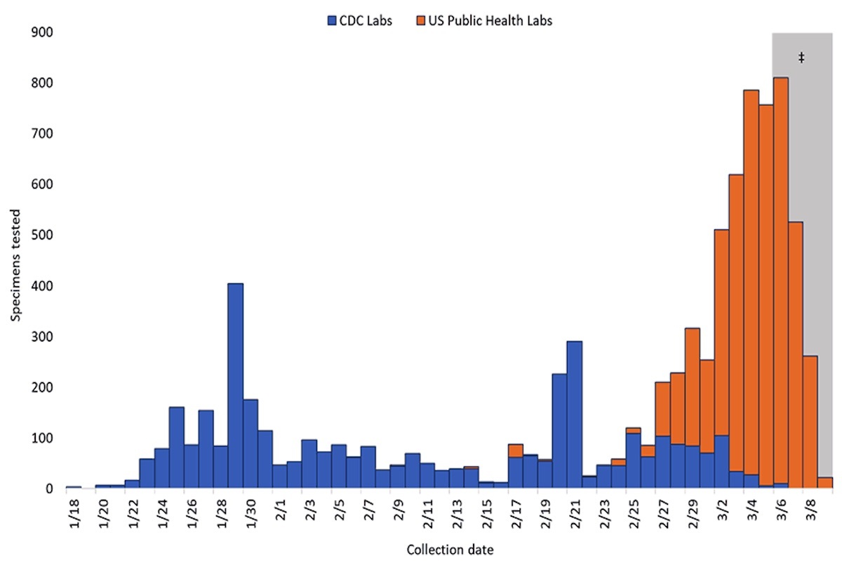 In einer Pressemitteilung, die am 10. März aktualisiert wurde, berichtete der CDC die Gesamtzahl der Tests, die sowohl von den CDC- als auch der US-amerikanischen öffentlichen Gesundheitslabor durchgeführt haben .