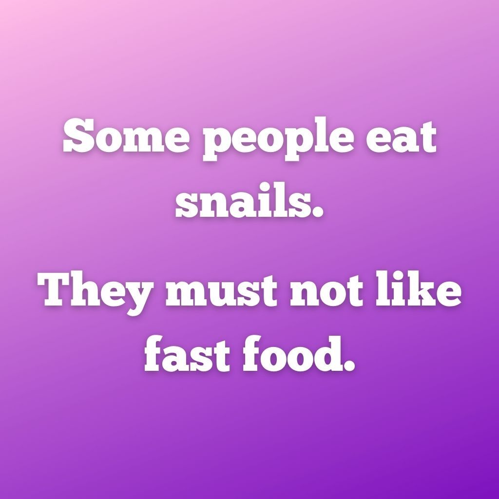 - Manche Menschen essen Schnecken. Sie dürfen nicht Fast-Food mögen.