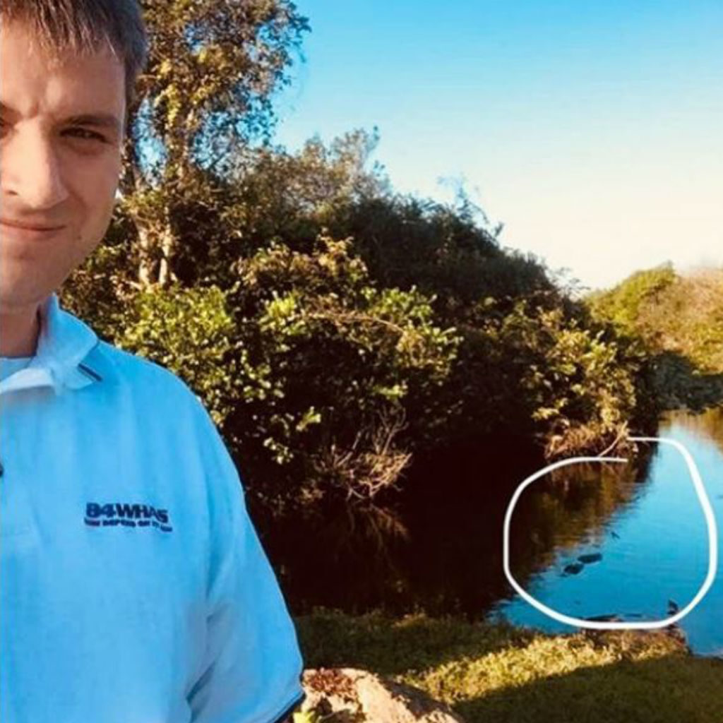 Das sieht aus wie ein ziemlich langweiliges Selfie, aber das ist eine AnnäherungAlligator Das ist in der rechten unteren Ecke gekreiset.
