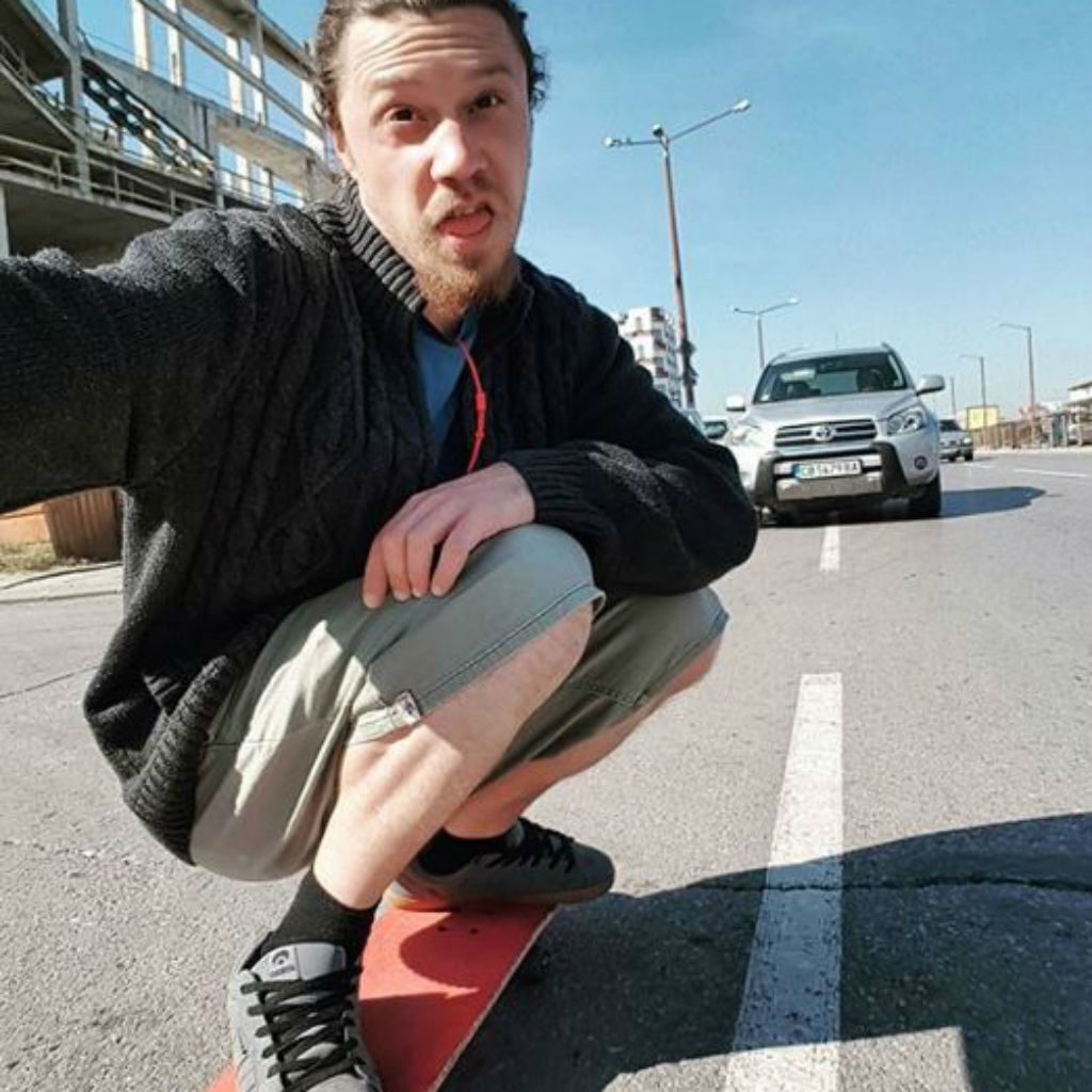 Dieser Typ ist ein Skateboarding unterhalb der Sichtlinie des Autos in der Mitte des Verkehrs ohne Helm. Es ist nicht überraschend, dass er das verwendeteHashtag "Mama genehmigt nicht."