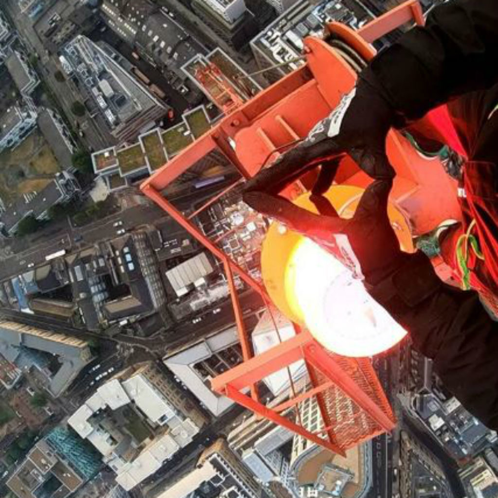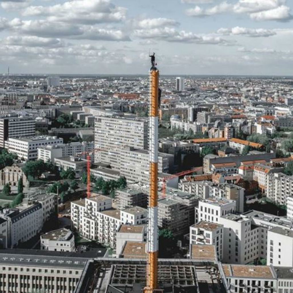 Wenn Sie keinen Zugang zu einem Wolkenkratzer haben, können Sie einen Kran für einen ähnlich dramatischen kletternselfieDas ist zwar nicht empfohlen, weil es wahrscheinlich illegal ist.