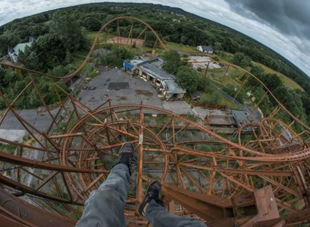 Etwas, das wie ein riesiger Rutsch aussieht, ist vielleicht nicht der beste Ort, um eine Pause über einem enormen Tropfen anzuhalten.