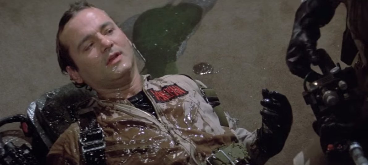 Peter ist nicht begeisterteiner der Opfer von Slimer. Aber Ray freut sich über die Beweise von der Begegnung, nämlich der Schleim, den Peter jetzt eingestellt hat.