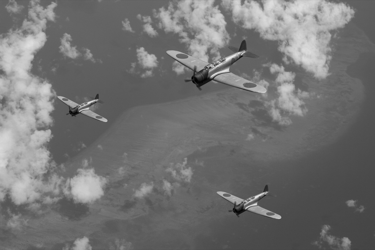 Japanischer Pilot SHIGENORI NISHIKAICHI, unter denen, die Pearl Harbor bombardten, landeten auf Hawaii. Die Einheimischen wissen nicht, dass die Japaner gerade mit ihrem Land Feindseligkeiten abgegriffen hatten, den feindlichen Kämpfer gnädig gnädig und frühstücken und sogar frühstückenihn ein Luau werfen-Mit Nishikaichi packte eine Gitarre und behandelte die Menge an einem traditionellen japanischen Lied.