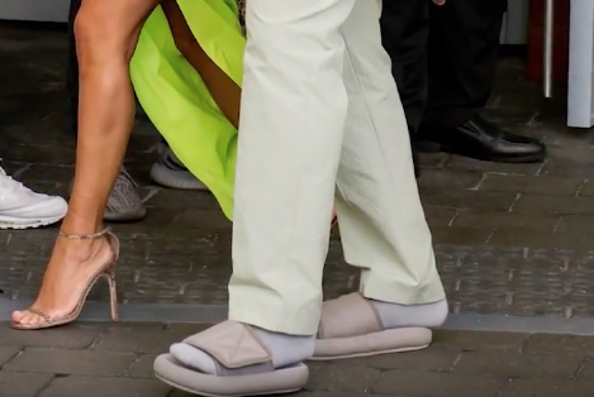 39 Kanye West trug weirdly kleinen Flip-Flop.
