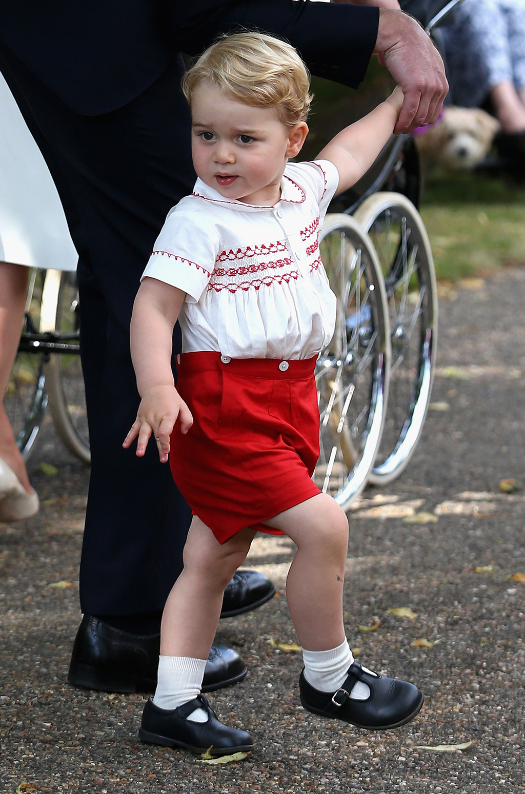 Jetzt gewährt, da Thomas Battersea eine Privatschule ist, trug George die Schuluniform. Nachauf ihre Website., das 446 $ Preppy Ensemble, bestehend aus einem V-Ausschnitt-Navy-Jersey, der das Logo der Schule in hellrotem, einem hellblauen kragen-Hemd, Navy-Bermudas, langen Navy-Regulierungssocken und schwarzen "polnischfähigen" Schuhen aufweist.
