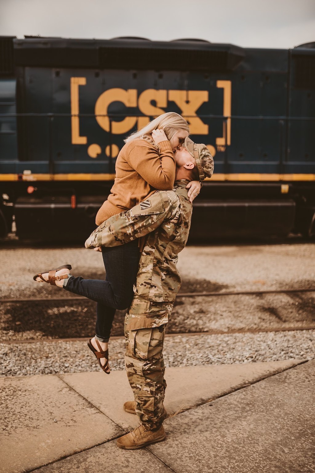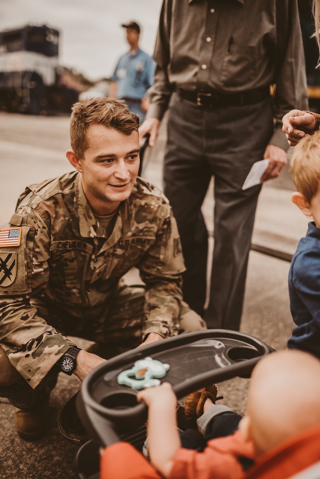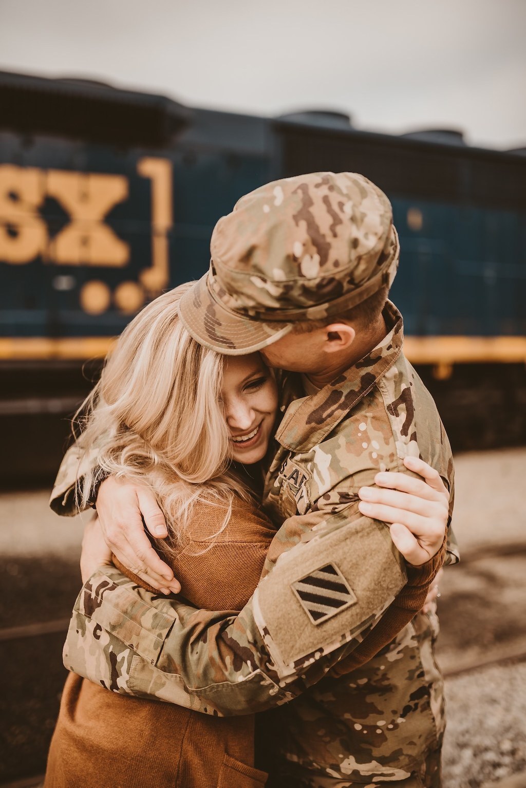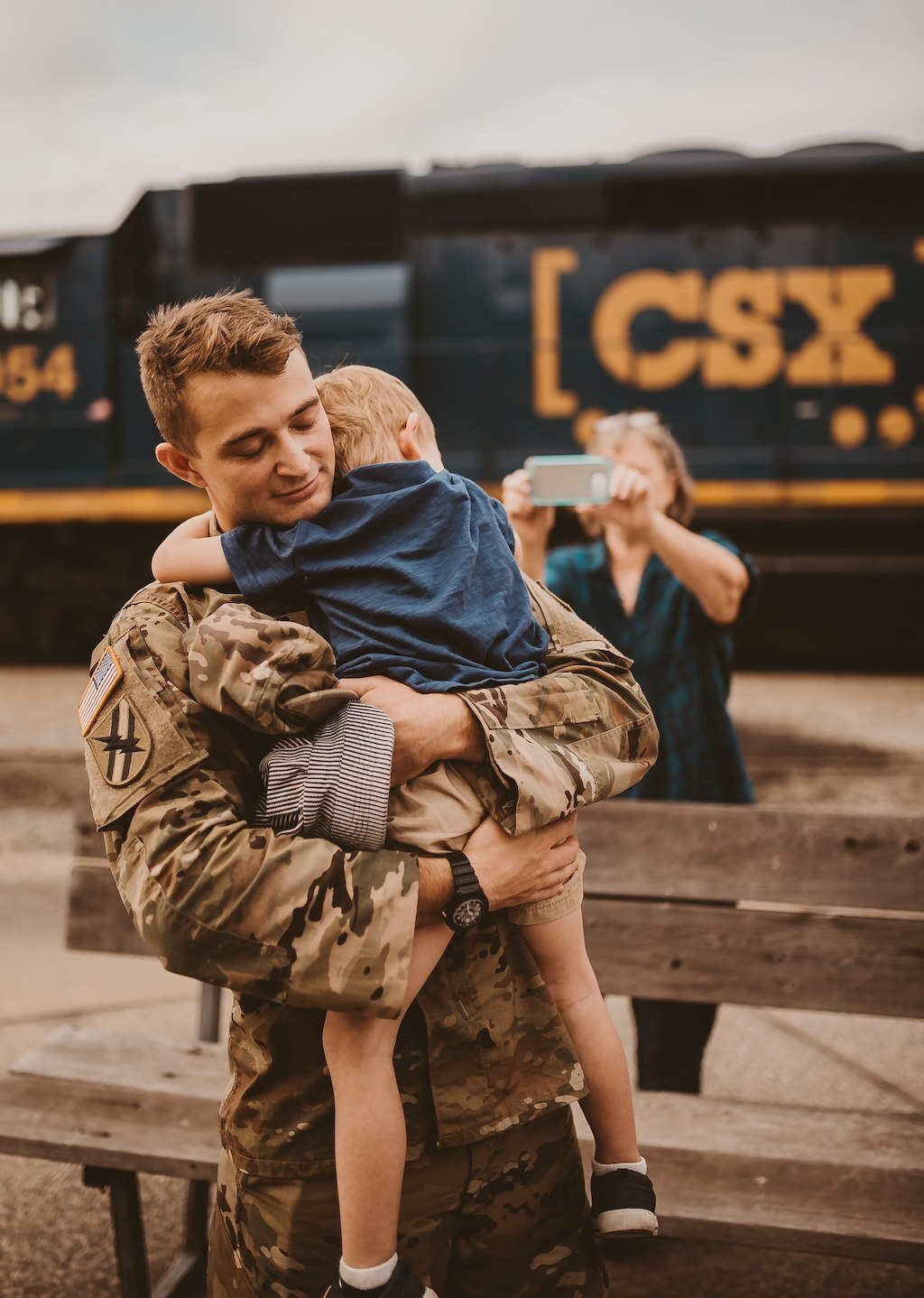 Brittany Watson., 22, ein professioneller Fotograf mit Sitz inSenoia, Georgia, schoss die Hochzeit vonDavid und Mary Chevalier vor einigen Jahren. Als das Paar ihr kürzlich an sie streckte, um zu fragen, ob sie ein paar Fotos von David nehmen würde, ein Mitglied derHeerWenn sie nach einem langen Einsatz mit seiner Familie wiedervereinigt hat, sagte sie begeistert ja.Am 28. September traf Watson Maria in derSüdöstliches Eisenbahnmuseum. In Duluth, Georgia, und eroberte die Momente, die David seine Frau umarmte, umarmte seinen vierjährigen Sohn, den Gage, und traf seinen sechsmonatigen Sohn, den Caspian, zum ersten Mal.