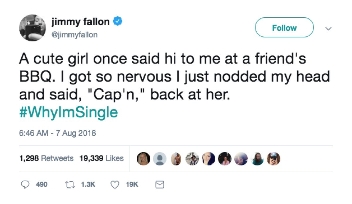 Wir wissen, dass er nur Spaß macht, aber wir finden diese Linie tatsächlich charmanter als99 Prozent der Pickup-Linien.