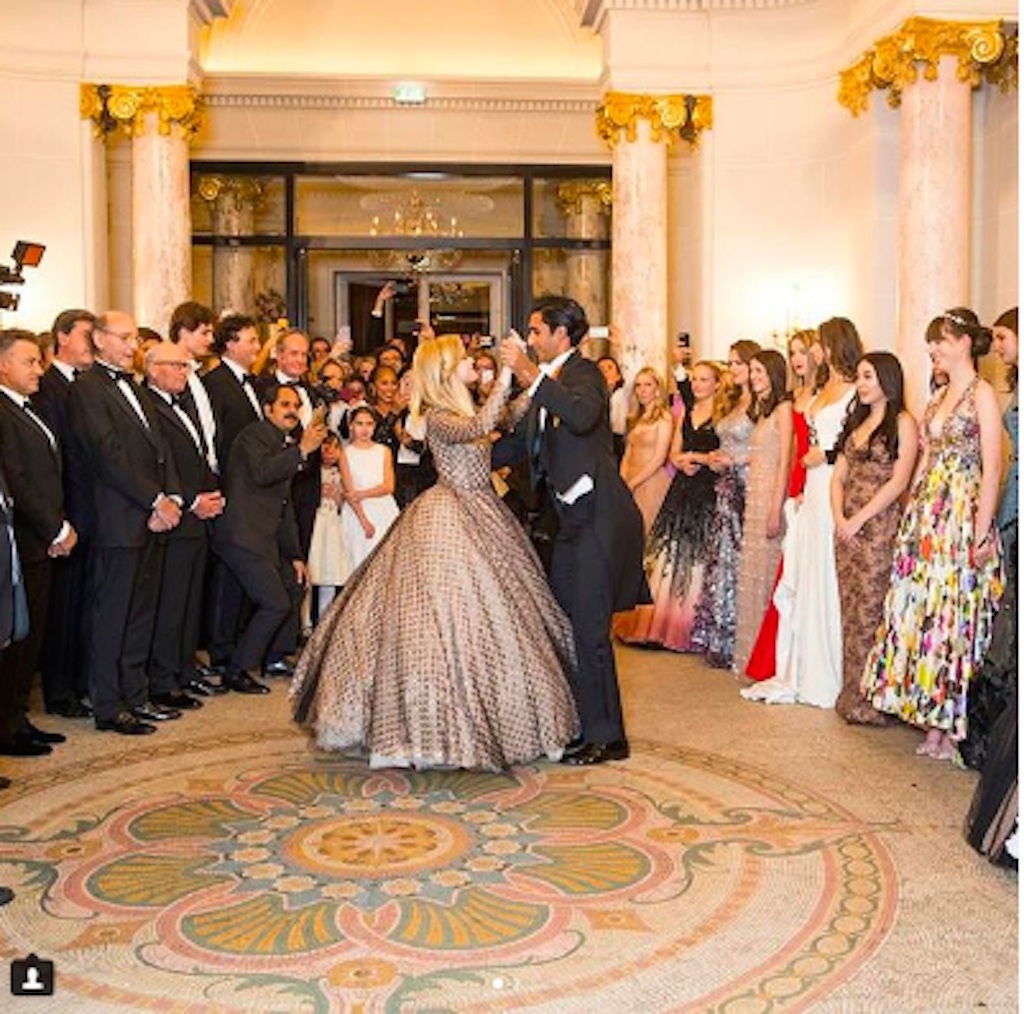 Jedes Jahr wird ein Debutante gewählt, um den Ball mit dem ersten Walzer zu öffnen. Ava Philippe und Maharaja Padmanabh Singh waren in diesem Jahr die offensichtliche Wahl, und sie tanzten zu "Mia und Sebastians Thema" aus dem träumigen romantischen Film des letzten Jahres,La La Land. Sie können ein Video von ihrem Tanz sehenHier.