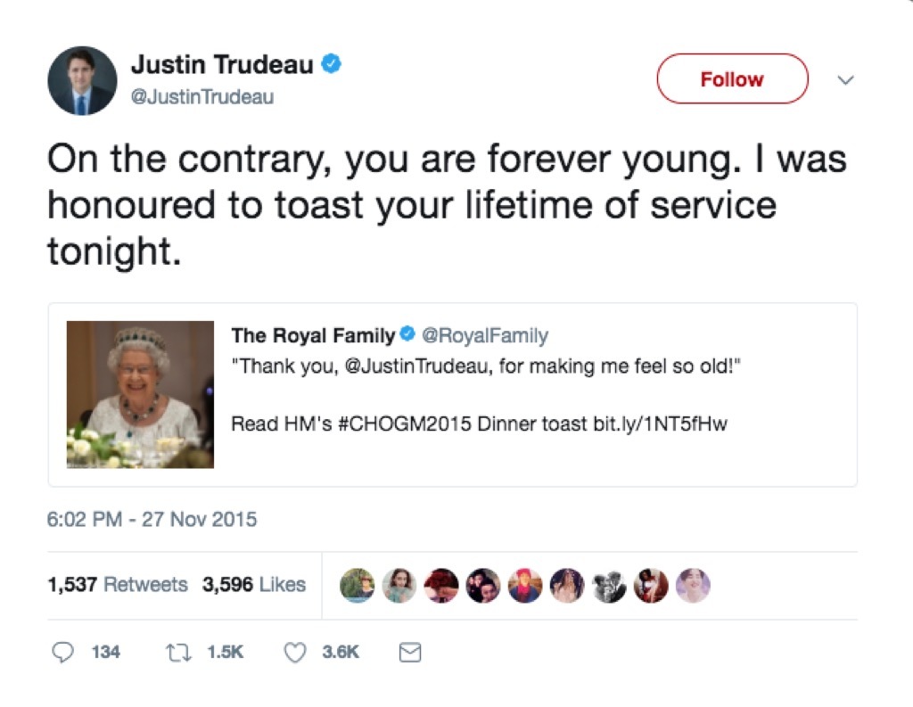 Im Gegensatz zu einigen Männern, dieTribüne und Auslauf Hyperbelnwie: „Niemand respektiert Frauen mehr als ich“ Trudeau nicht gehen um sich eine konstante Klaps auf den Rücken geben für Frauen zu respektieren. Er, nur, wissen Sie, respektiert Frauen, wie eine echte Feministin. Typischer Fall: wenn 2015 ein Reporter fragte ihn, warum es eine Priorität für ihn war, ein Kabinett zu haben, das war „geschlecht ausgewogen“seine einfache Antwort war: „Weil es 2015.“ Boom!
