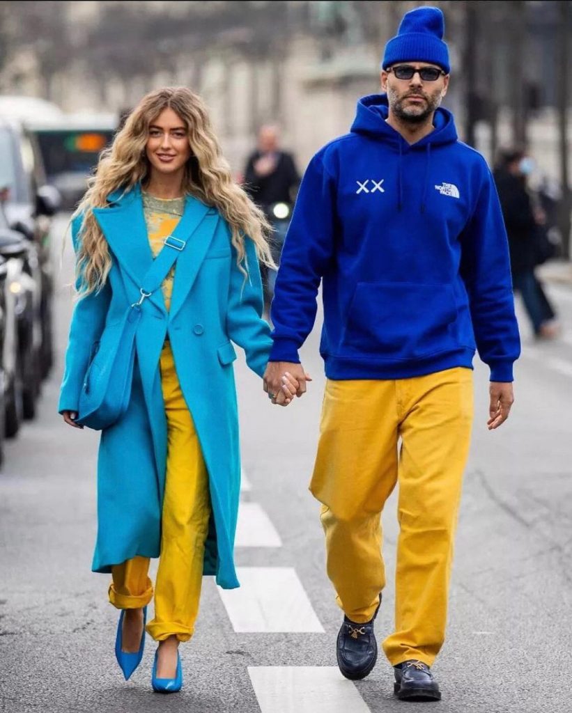 In einem Beitrag zeigt die Ukraine Instagram, wie Emili Sindlev, ein Modestylist und ein Influencer aus Dänemark, und dänischer Mode-Stylistin und Berater Mads Emil Grove Møller Hände in modischen blauen und gelben Outfits für die Ukraine halten. Sie machten diesen Auftritt in Paris City Fashion Week, mit einer dieser Beschriftung liest: "Freiheit Blau, Erregung gelb #stoprustrischagresssioan #standwithukraine." Ein Kommentar zu diesem Beitrag betonte, wie diese Prominenten ihren Einfluss nutzen, um andere zu motivieren, andere zu unterstützen: "Jede Person hat eine Macht und diese Influencer können Menschen motivieren. Also wird jeder und jede Unterstützung geschätzt! "