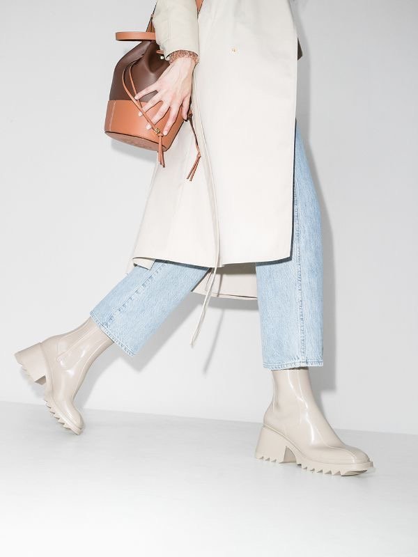 Ja, du hast es ganz richtig gelesen. Wer hat gesagt, dass Regenschuhe angemessen aussehen sollten? Oder dass Sie sie nur im Regen tragen sollten. Seien Sie mutig und stilvoll und wage es, mehr als nur wenige Stiefel zu tragen. Sie passen sehr gut mit den Plateau-Fersen, die dieses Jahr von Versace gestartet wurden ...