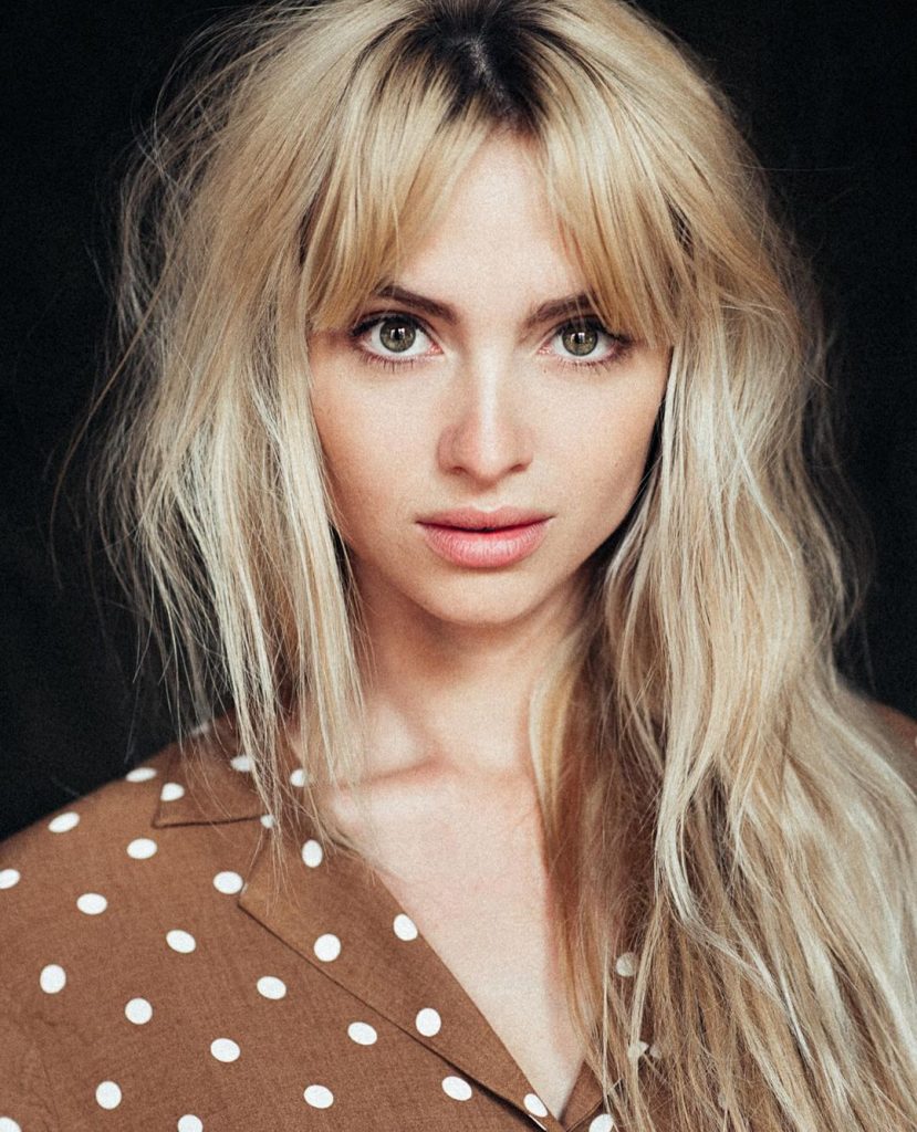 Aurélie hat blonde Haare, die sie manchmal in einem enttäuschten Brötchen kappen, manchmal gewellt. Seine charakteristische Frisur des Augenblicks, es ist etwas welliges langes Haar.
