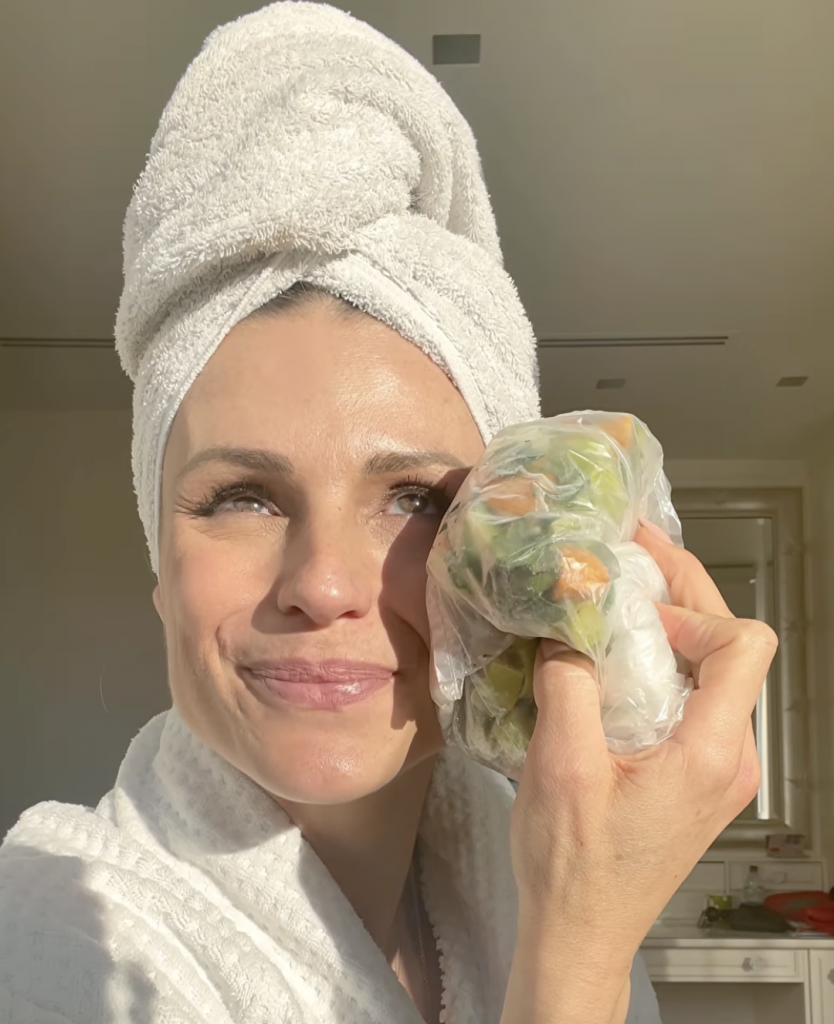 Diese Schönheitsroutine ist sehr einfach und Sie haben zwei Möglichkeiten auf den "Werkzeugen", Sie können wirklich das große geschnittene Gemüse verwenden, das Sie im Gefrierschrank für die Suppe für die Suppe haben. Das sanfte Massieren der Haut für einige Minuten täglich ist täglich subkutane Mikrozirkulation aktiviert, die zusammen mit der niedrigen Temperatur des Eiss die Haut hilft, die Haut auftönig zu halten und zu glühen.