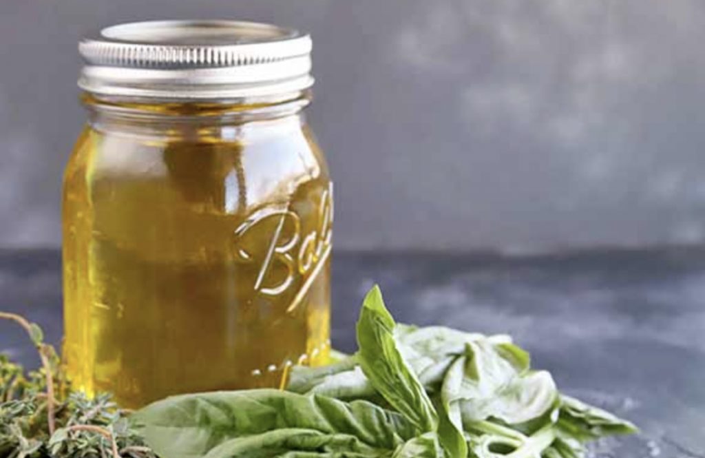 Öl mit dem Geruch von Basilikum erfrischend, entspannend und auch einen einzigartigen Geruch geben Sie Ihrem Essen Spaß. Und das Basilikum ist leicht leicht zu finden.