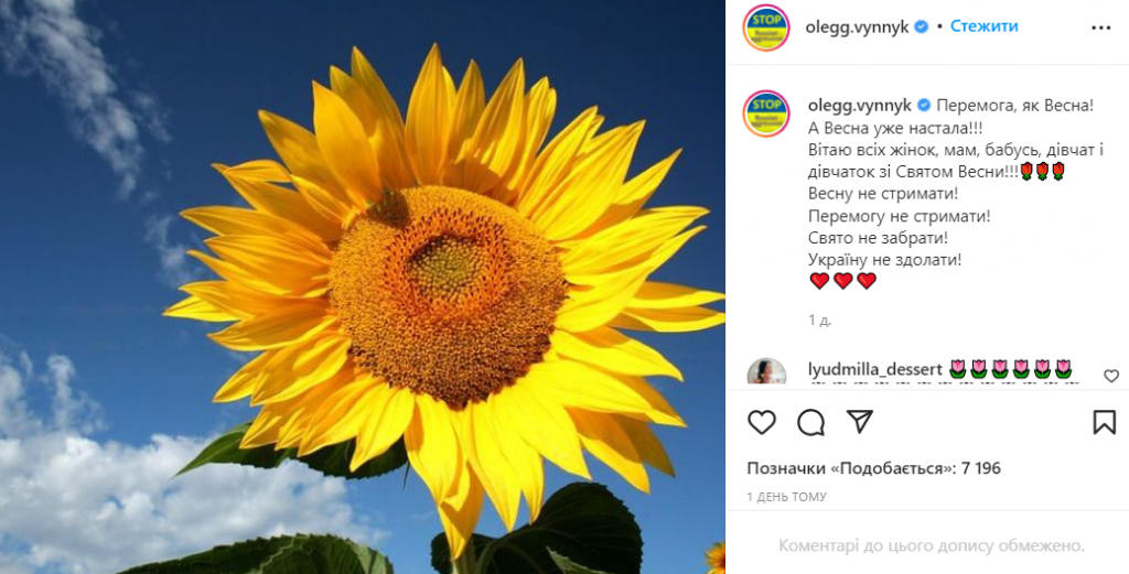 Berühmte Männer der Ukraine gratulierten auch dem schönen Geschlecht mit dem Urlaub des Frühlings. Ihre Seiten in sozialen Netzwerken erfüllten buchstäblich die Grüße und Worte of Dankbarkeit an die Ufer, die nun neben ihren üblichen Pflichten sind, kümmern sie sich auch um unsere Sicherheit und geben den russischen Orks mit Ihnen.