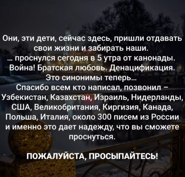 „Ich weiß, dass russische Bürger - keine Information Sie in völliger Dunkelheit sind, weil Sie nicht zeigen und sagen, was es alles fake ist, wir kommen alle mit Aber so viele Menschen können nicht verrückt gehen und schnell zugleich alle.. Fotos, Videos und Bitte um Hilfe. "