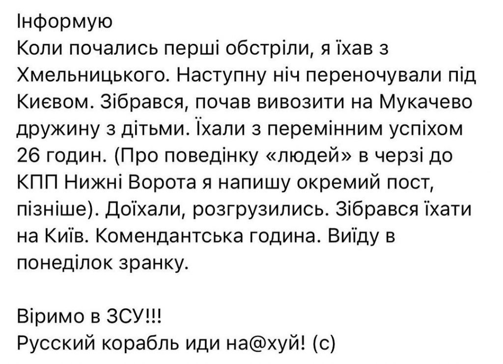 „Putin sagte, dass er nicht die Ukraine braucht, aber wie immer gelogen. Außerdem in Feindseligkeiten beteiligt Belarus“.