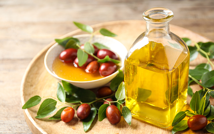In Arizona wachsen Mexiko und Kaliforna Jojoba-Strauch, dass dieses Öl im Körper eines goldenen flüssigen Wachs hergestellt wird, dreht sich um, nachdem er sich auf das gjobobe Öl verfeinert, das ihn nicht färbt noch Geruch. Jojoba-Öl ist nicht leichte Licht auf den Haaren, die Sie nicht durch Hinzufügen anderer Öle gemildert werden müssen, und verstärkt und feuchtigkeitsspendende Haarfollikel sowie Helfen, die Haarlänge zu erhöhen, da es Vitamin E und Vitamin enthält.