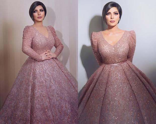 Von dem großen Kuwaiti-Designer angemeldet ist Youssef Al-Jasmi das Rosa Kleid von Asalas in einem der schönsten Ansichten überhaupt in einer seiner schönsten Ansichten erholt.