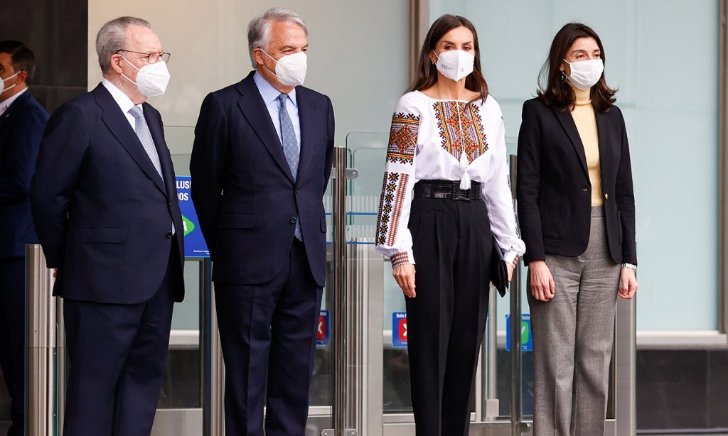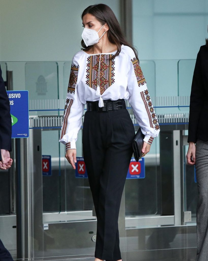 Die Anwesenheit von Königin Letizia übernahm all das Aussehen, wie in ihren öffentlichen Auftritten in der Regel üblich ist, als sie in der Tat auftrat, die eine ukrainische Bluse auftrat, die auf das typische Landgewand, derVyshyvanka..