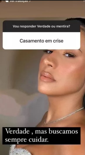 Wie jede dauerhafte Ehe ist zu erwarten, dass in Simone und Kaka auch Krisen gewesen ist. Am Ende von 2021 erschienen Gerüchte, dass sie kämpfen würden, und viele Fans begannen, Simone in der Kiste der Fragen von ihnen zu fragenGeschichten auf Instagram. Der Sänger antwortete "das ja, aber das suche sie immer fürsorglich."