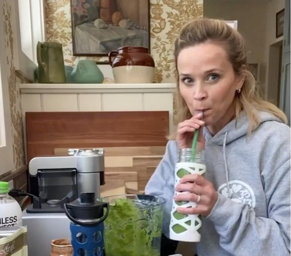 Ok, das ist nicht das revolutionärste Frühstücksmehl, aber viele Leute treffen sich nicht ihrer täglichen Quote für Grüns, da Sie einen gehäuften Haufen davon essen müssen, und das ist nicht gerade ansprechend. Stattdessen bekommt Reese ihre tägliche Füllung mit diesem leckeren und gesunden Rezept, das aus zwei ganzen Salatköpfen, einer Viertelschale Spinat, Birnen, Apfel, Sellerie, Banane und einer ganzen Zitrone besteht, einschließlich der Samen! Sie fügt auch Kokosnusswasser und Mandelbutter hinzu.