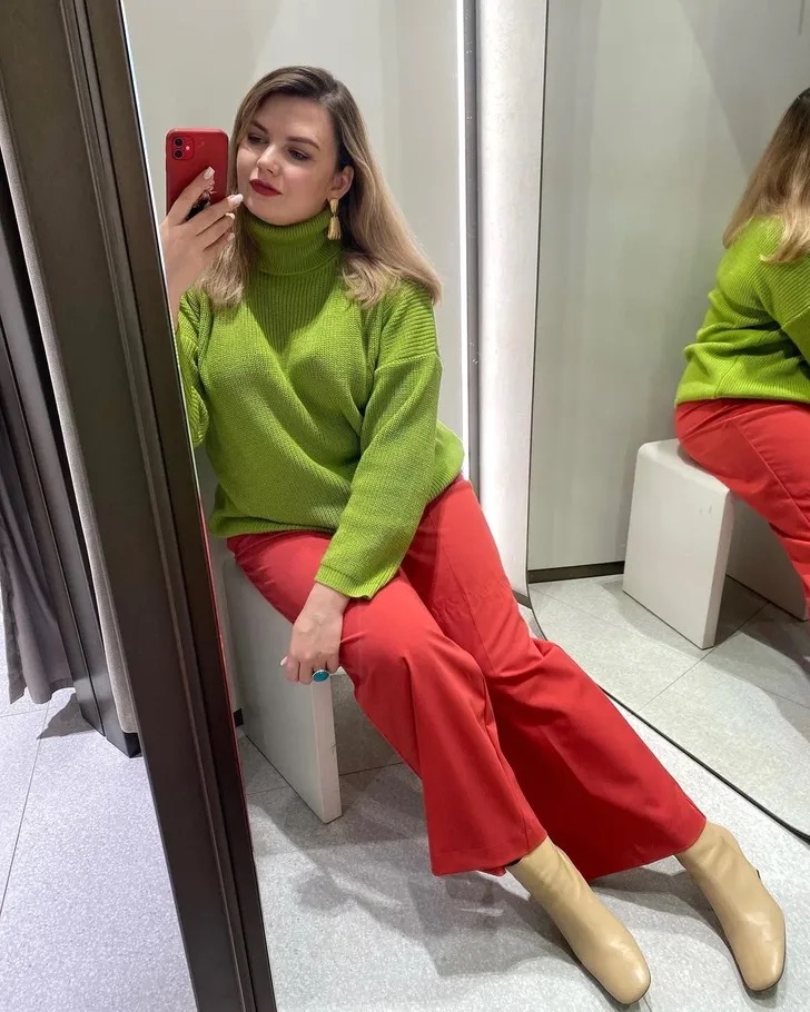 Volle Frauen, die helle Dinge tragen, die Sie nicht können. Es ist ein Mythos! Wie die Tatsache, dass Schwarz Sie zu einer Dehyder machen wird. Natürlich behalten die grundlegenden Farben immer die Relevanz, aber manchmal möchten Sie eine Vielfalt! In diesem Fall können Sie im Bild nur wenige Farbtöne kombinieren. Sie müssen nicht mit der Palette remakieren.