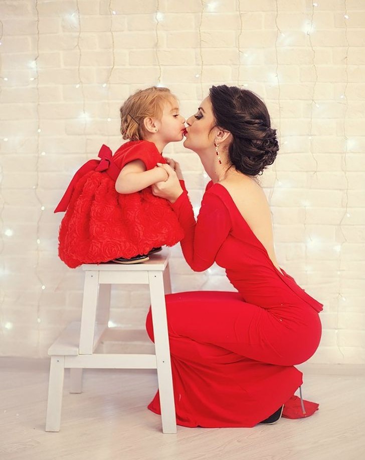 Mutter und Tochter. Einen Moment für die Ewigkeit fangen. Scheinen sie diese beiden schönen Wesen nicht bezaubernd? Eine Mutter und eine Tochter, für die die Zeit aufgehört hat, viel Platz zum Lieben zu lassen.