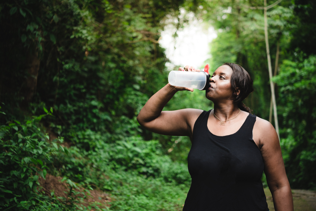 Stellen Sie sicher, dass Sie Flüssigkeiten trinken - und wissen, welche Flüssigkeiten zu wissen sindbleiben Sie weg von- Ist eine wesentliche Komponente bei der Vorbeugung von Wärmeschlag und anderen Phasen der Hyperthermie. "Bei körperlich anstrengenden Aktivitäten trinken Sie Flüssigkeiten wie Sportgetränke, die Elektrolyte und Salz enthalten, um die Mineralien zu ersetzen, die Ihr Körper schweißt", rät Schisler und fügt hinzu, dass es am besten ist, sich von Alkohol und zuckerhaltigen Getränken fernzuhalten.