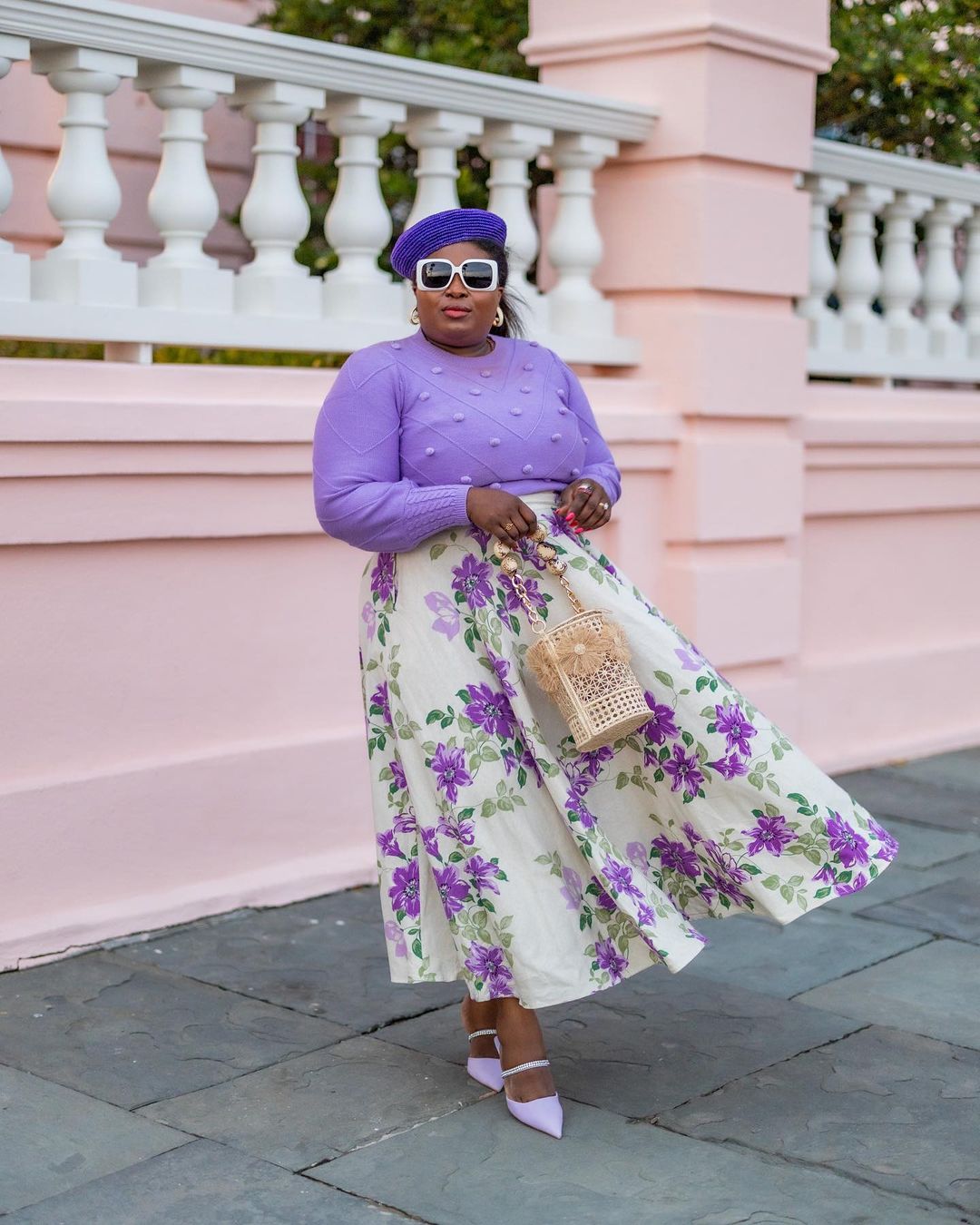 Pastellfarben und Blumenmuster sind von Natur aus zu den Sommermonaten. Vielleicht gibt es so viel, dass Sie es vorziehen, diese Farben zu vermeiden, aber das wäre ein Fehler. Die ideale Kombination präsentiert unser nächstes Modell. Der Rock mit Blumenmuster wird am besten mit einem Pullover in Pastellfarbe kombiniert. Dieses Outfit eignet sich sowohl für Kaffee als auch für eine Party am Nachmittag.