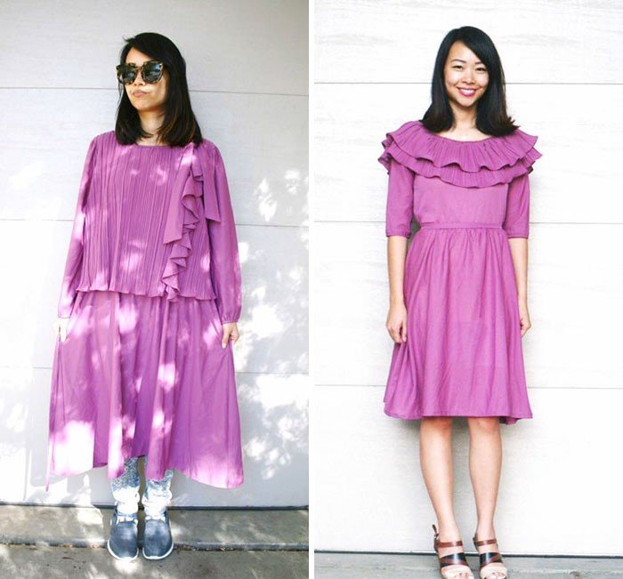 Sie ist keineswegs eine professionelle Näherin, sie nutzt nur die Fähigkeiten, die sie in einem Hauswirtschaftsklasse in der Schule erlernt hat. Sie sagt, es geht zuerst nur um kleine Veränderungen. Wie man die Dinge kürzer macht oder die Taille festzieht.