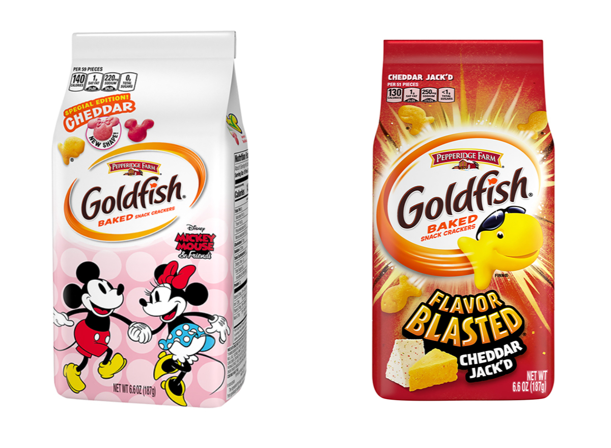 Goldfische verkauft Cracker, die wie Mickey und Minnie-Maus aussehen