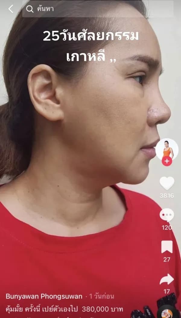 Som Cheeng-Boonyawan Pongsuwan oder Som Cheeng Sam Cha, ein 55-jähriger Comedy-Künstler, diesmal Nong Teng-Tom, für Face Operation in Korea, hat kürzlich ein Video-Clip-Update gepostet. Auf Tik Tok @Somchen3cha über den Fortschritt des neuen Gesichts dauert es 25 Tage, bis er sich erholt hat.