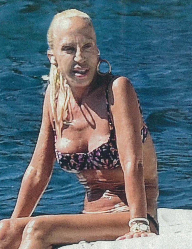 Sie ist eine der berühmtesten und einflussreichsten Stylisten der Welt. Sie begann in der Welt der Mode mit ihrem Bruder Gianni Versace zu arbeiten und war nach ihrem Tod diejenige, die die Leitung der Gesellschaft in ihre Hand übernahm. Sie ist eine Frau, die definitiv das wichtige Make -up liebt, und es ist sehr selten, dass sie entfernt wird, aber irgendwo ist ein Foto von ihr in Bikini auf dem Boot erschienen, ohne dass auch ein Faden des Make -ups und ihr Unterschied wirklich bemerkenswert ist.