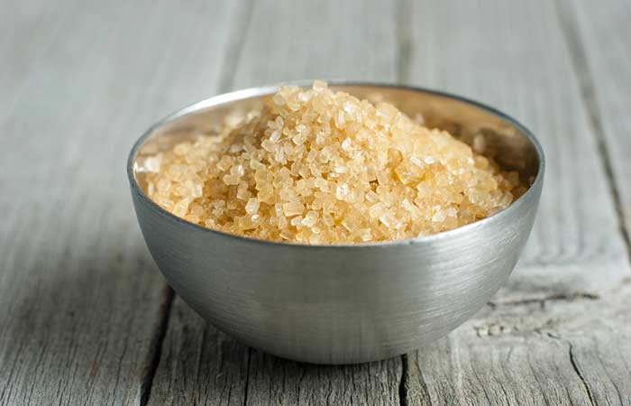 Zuckerpeeling ist der beste natürliche Weg, um die Haut zu peelen. Es hilft, abgestorbene Hautzellen loszuwerden, und erneuert die Blutkreislauf der Haut durch Massage für 10 Minuten. Um das Zuckerpeeling zu Hause vorzubereiten, benötigen Sie einen Esslöffel Zucker und mischen es mit einem Teelöffel Kokosöl, da Kokosnuss die Haut befeuchtet und ihren Glanz hält.