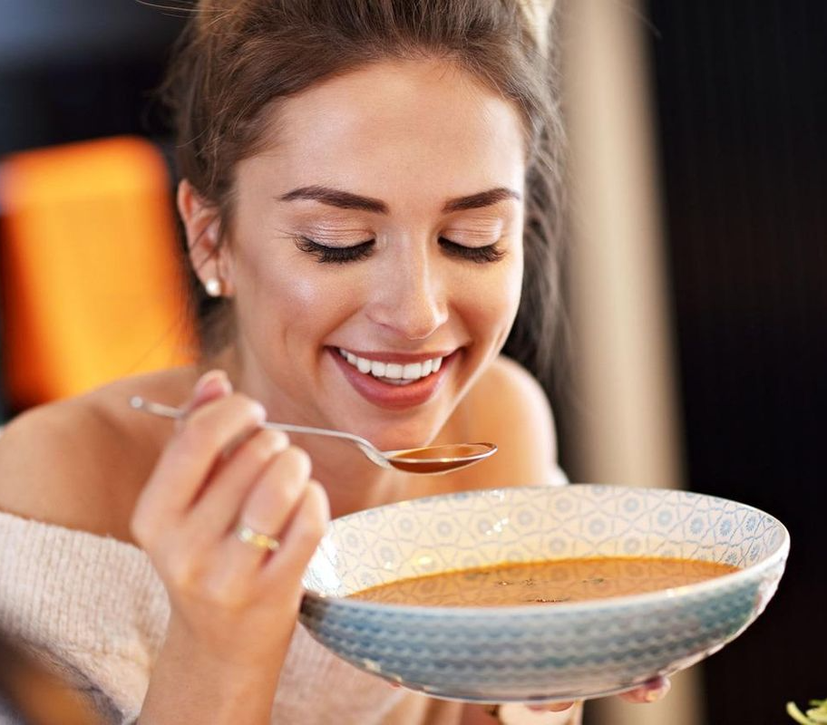 Die flüssige Basis der Suppe trägt zur Rendrierung bei, was im Winter besonders wichtig ist, wenn Sie nicht so viel und weniger wahrscheinlich schwitzen, um den Durst nach Wasser zu stillen. Bei kaltem Wetter erwärmen auch Suppen schnell, den Stoffwechsel zu verbessern und den Körper mit Wärme und Energie zu füllen.