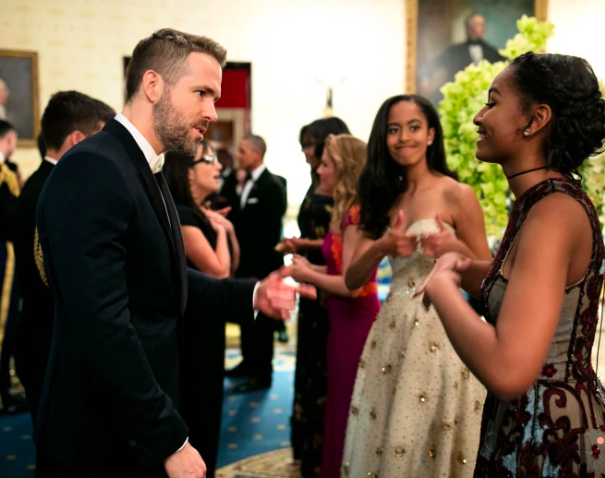 Beim kanadischen Staatsessen strahlten Malia und Sasha Grace in Ballkleid aus. Während sie bisher in ihren elegantesten Outfits waren, nutzten sie keine Chance, ein lustiges Foto zu verpassen. Hier schwärmt Sasha darüber, dass sie Prominente Ryan Reynolds treffen, während Malia hinterhältige Daumen hoch macht und beweist, dass sie zwar wie Promis in dieser Gala aussehen, aber tatsächlich sehr zuordenbar sind.