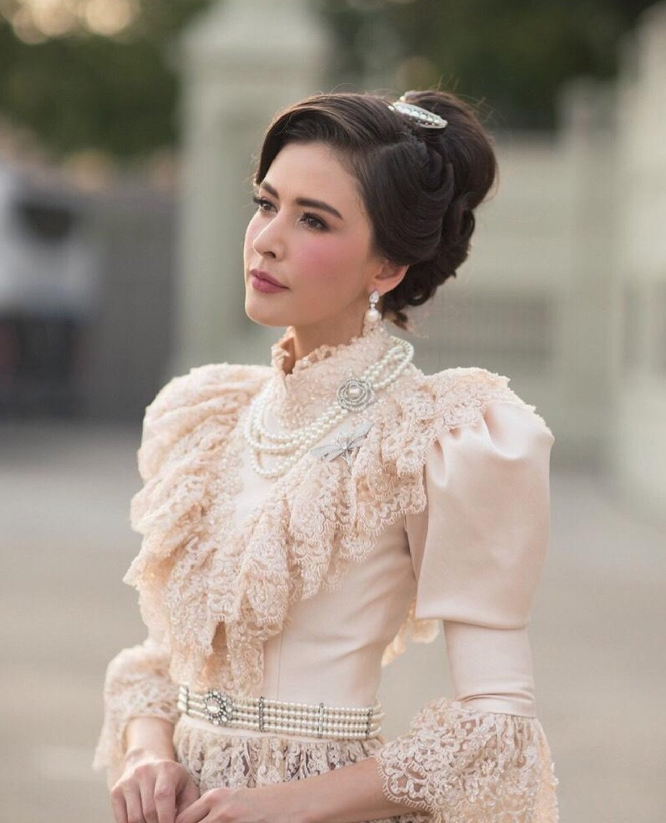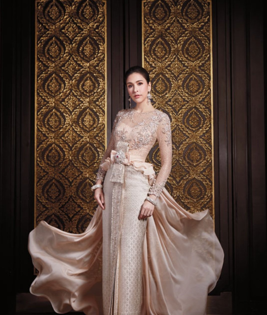 Ein Teil, der ausgewählt wurde: ist eine andere Person, die, egal welches Kleid, immer elegant und elegant ist. Für Sri Rita Jensen und vor allem ist sie eine sehr berühmte Person für das Tragen von thailändischen Outfits. Richtig schön.