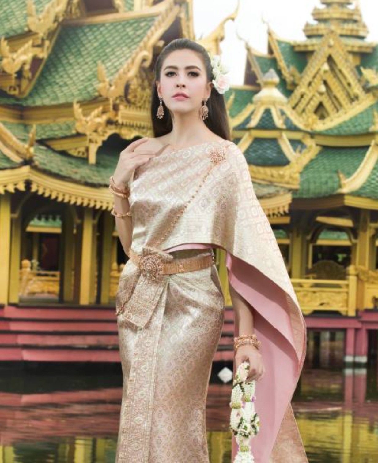 Das Chakri Thai -Kleid ist ein sehr schönes Kleid, das oft in vielen wichtigen Zeremonien verwendet wird, die manche Menschen als Hochzeitskleid verwenden. Welches wird ein thailändisches Kleid sein, das aus Schrägen und Riemen oder Broschen besteht, um die Stabilität des Sets mehr zu erhöhen