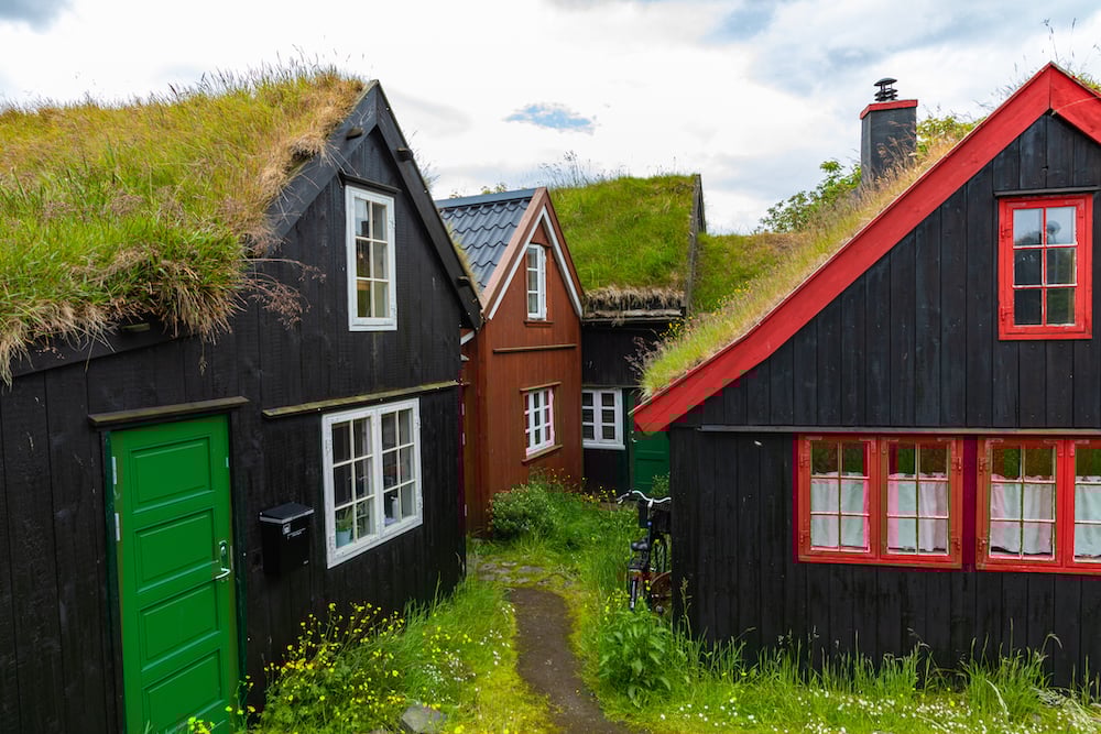 7. Häuser mit Torfdächern, auf denen Gras wächst, Norwegen