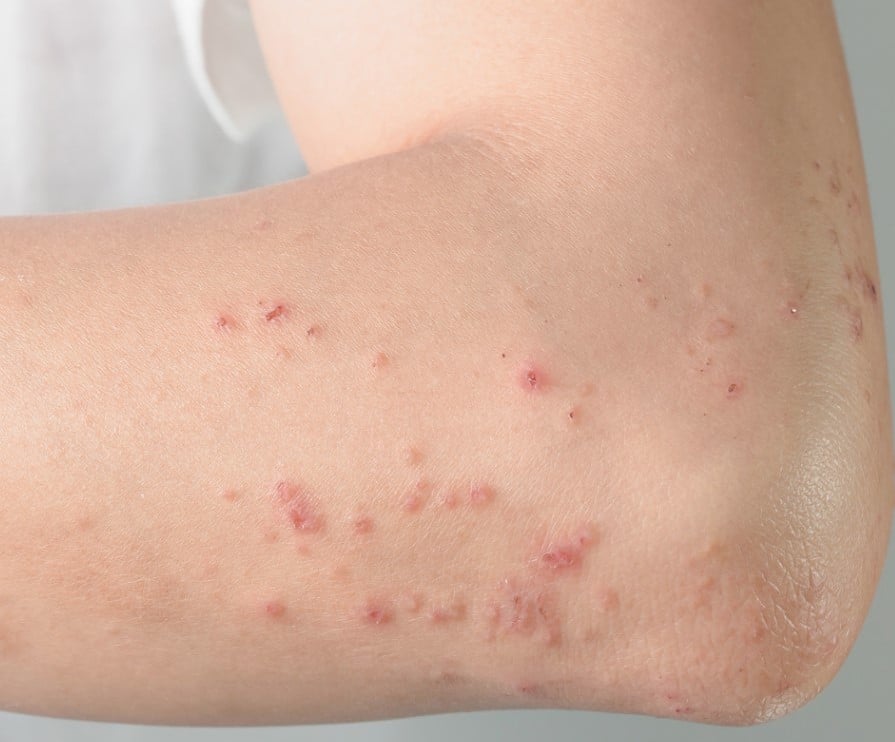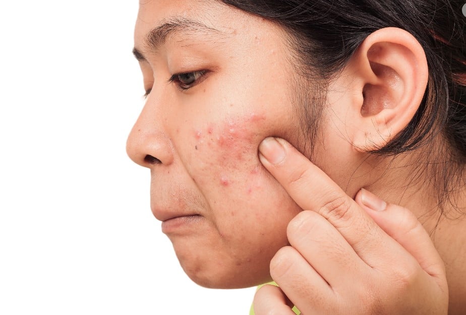 Eine der häufigsten Ursachen für Hautunreinheiten, Akne kann in Form von Mitesser und Pickeln entstehen. Es wird durch die Akkumulation von Talg, Bakterien oder Schmutz in den Haarfollikeln verursacht und kann dunkle Flecken und Narben auf der Haut hinterlassen, insbesondere wenn die Person versucht, manuell zu entfernen. Hormonelle Veränderungen und Stress können auch zur Bildung von Akne auf der Haut beitragen.
