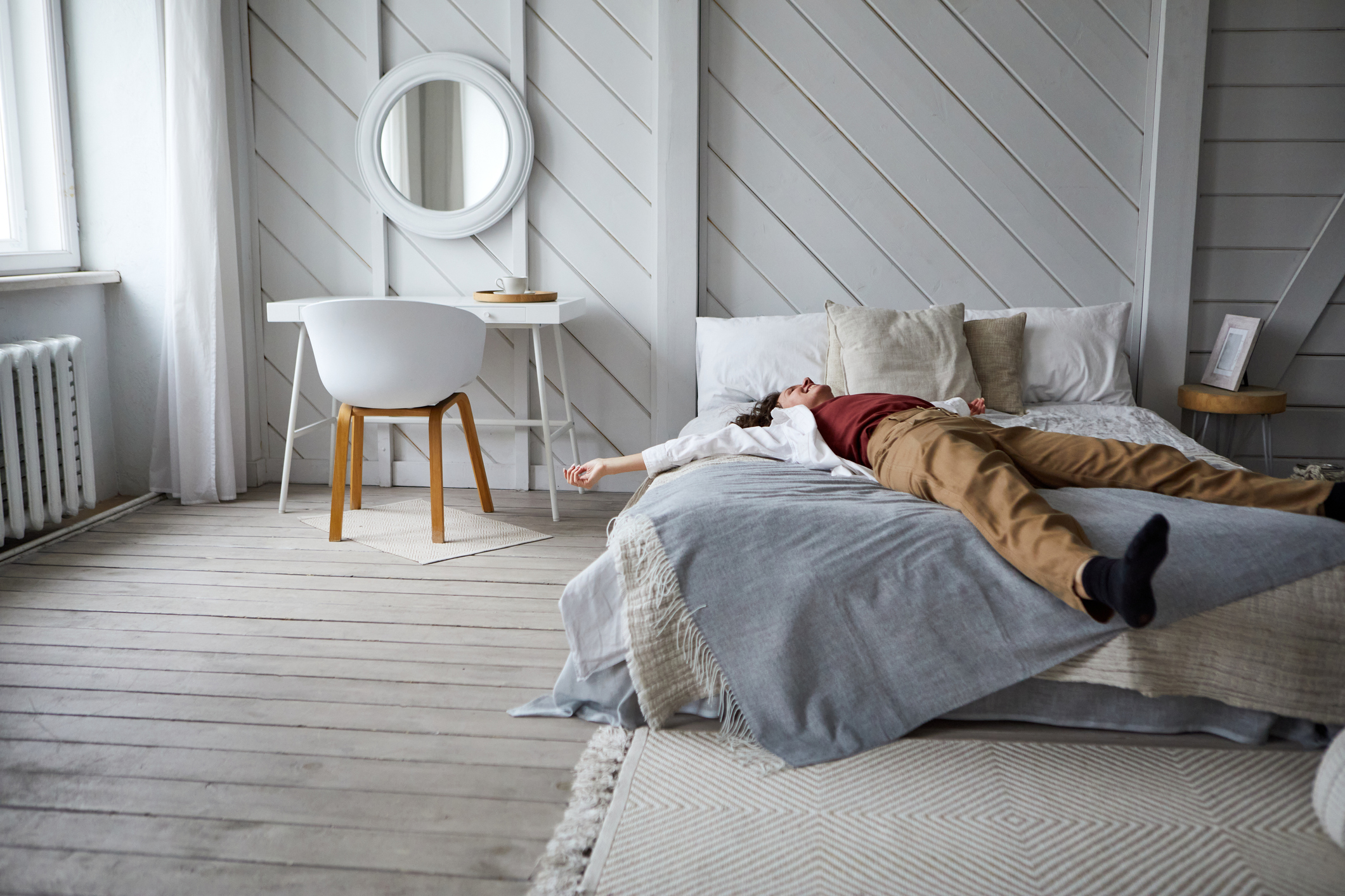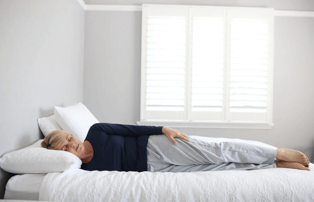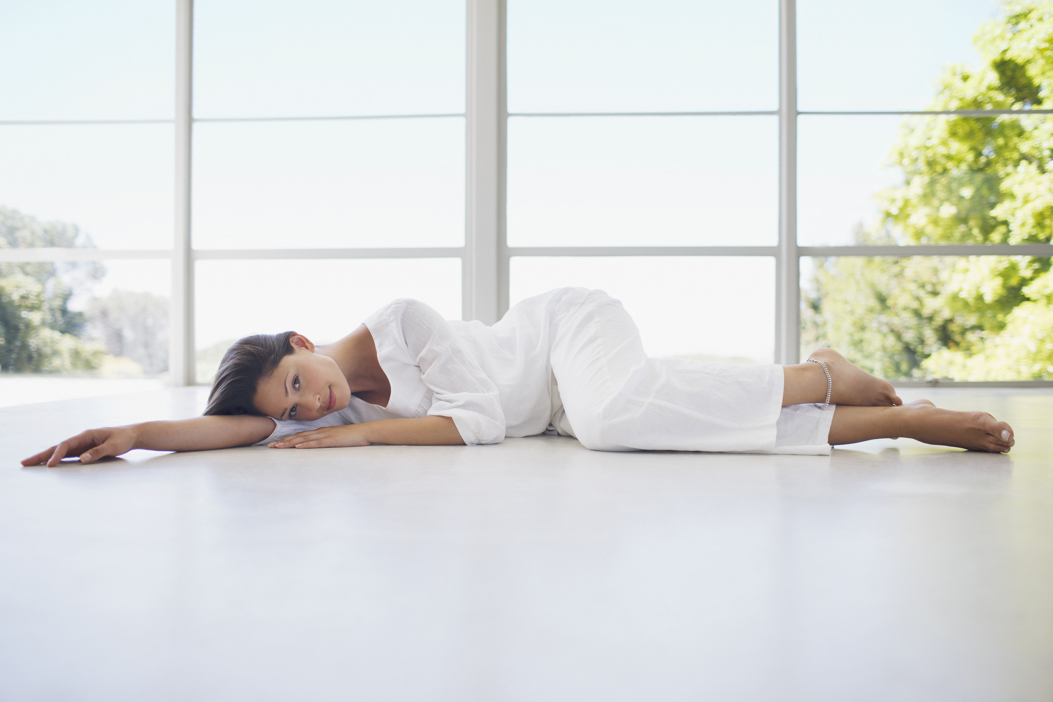 Liegen Sie auf Ihrer Seite, Ihr Kopf auf Ihren Armen