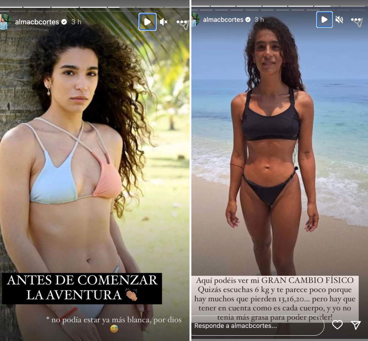 Die meisten Kritikpunkte, denen Alma Bollo ausgesetzt war, waren für seinen Körper. Die Teilnehmer sollten essen, was sie auf der Insel finden, und manchmal sogar unter Dehydration leiden, so dass die überwiegende Mehrheit viel Gewicht verliert. Die Öffentlichkeit sagte jedoch, dass die Ausdünnung im Fall von Alma nicht spürbar war und sogar "Bauch" hatte. Die junge Frau musste zu den schlechten Kommentaren gehen und erklärte, dass ihr während des Programms mitgeteilt wurde, dass sie ein gereiztes Dickdarm -Syndrom hatte, ein Problem, das sich vielleicht für schlechte Ernährung verschlechterte und deshalb wurde sie immer geschwollen. Aber er veröffentlichte sogar ein Foto von bevor er auf die Insel und ein weiteres nach dem Nachweisen hat, dass er abgenommen hatte, insbesondere sechs Kilo.