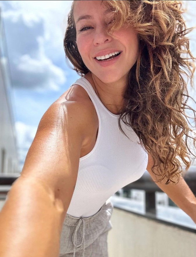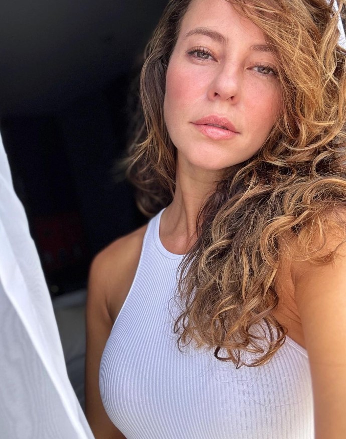 mit lockigem Haar und ohne Make -up erscheint Paolla Oliveira, die natürliche Schönheit zu verschwenden