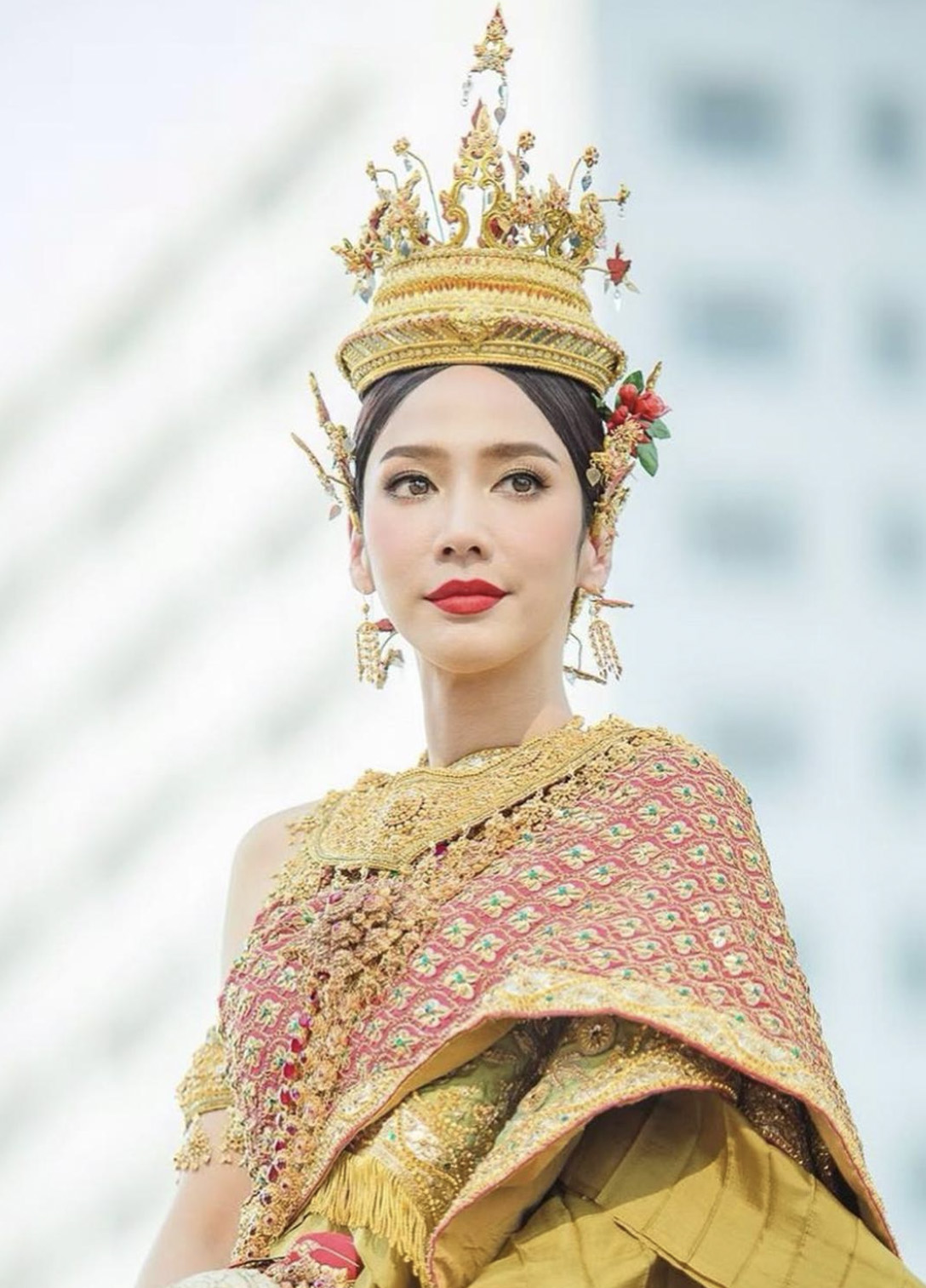Die weibliche Protagonistin hat ein charmantes Gesicht. Obwohl wir sie nicht oft in thailändischen Kostümen sehen, aber als ich sie im Tung Tungwi -Kleid sah, konnten wir uns nicht über die Ohren erstaunen.