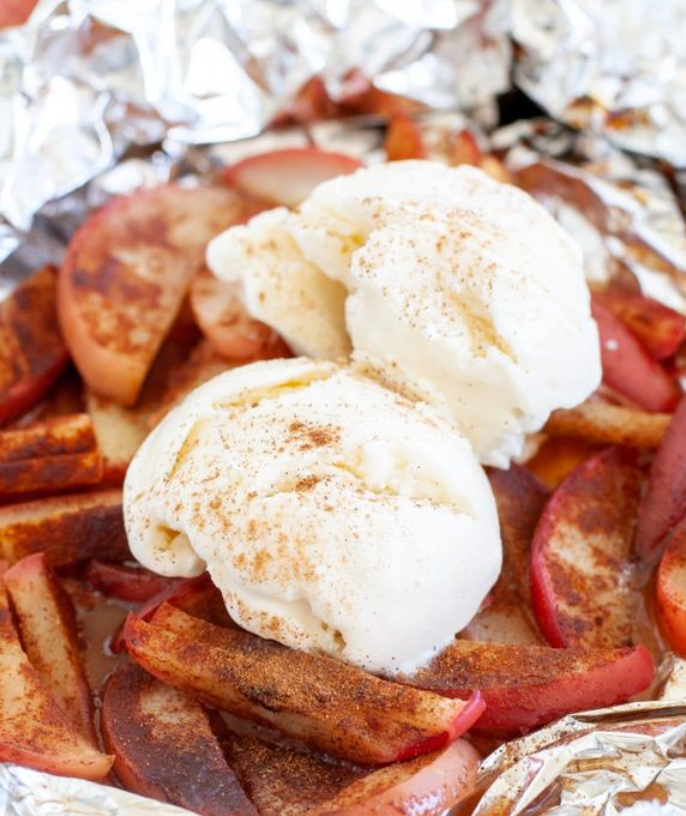 Zuerst müssen Sie den Apfel schälen und in kleine Scheiben schneiden. Anschließend die Mischung aus Butter, Zimt und braunem Zucker gleichmäßig auf den Apfelscheiben verteilen und in Folie einwickeln. Beim Backen werden Sie die geschmolzene Butter in Kombination mit dem wunderbaren Geschmack der weichen, saftigen Apfelscheiben in Erstaunen versetzen. Dieser Bratapfel kann als perfektes Dessert mit reichhaltigem griechischem Joghurt oder Schlagsahne serviert werden.