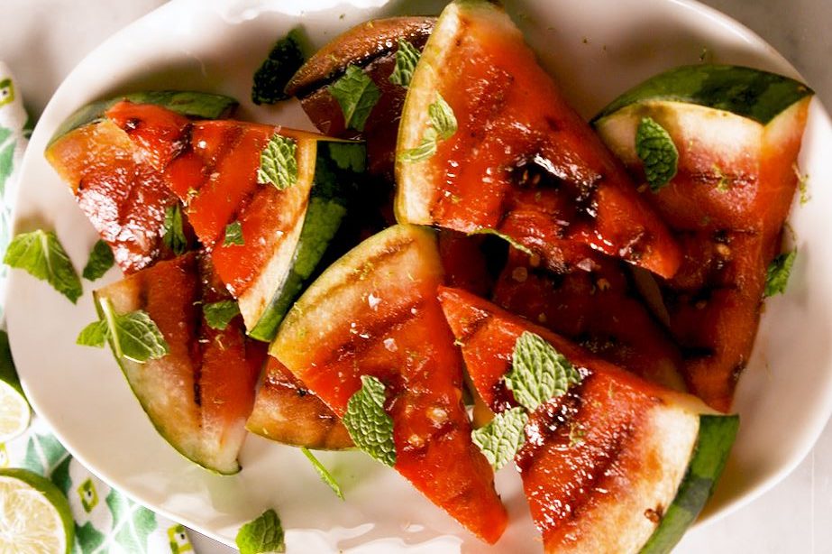 Wie gebackene Pfirsiche behält auch gegrillte Wassermelone ihre natürliche Süße, sorgt aber dennoch für ein erfrischendes Gefühl. Wassermelonenscheiben in kleine Stücke schneiden und mit einer Mischung aus Olivenöl, Honig, Limettensaft und fein gehackter Zitronenschale bestreichen. Dann auf jeder Seite etwa 2 Minuten backen. Die Saucenschicht bringt den reichen Geschmack zur Geltung und bildet eine attraktive „Karamell“-Schicht auf der Wassermelone. Sobald Sie fertig sind, können Sie eine Mischung aus gehackten Minzblättern und Meersalz über das fertige Produkt streuen und genießen.