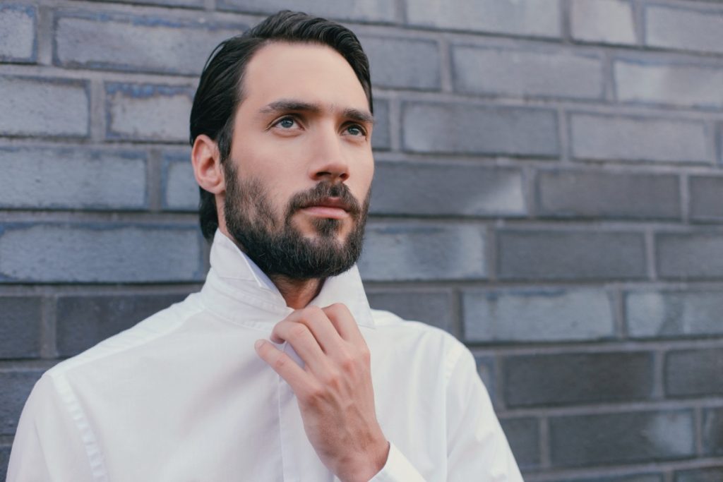 8. Er berührt seinen Ausschnitt oder seinen Kragen