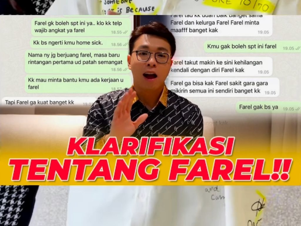 Am 12. August 2023 hat Doktor Richard Lee schließlich ein Klarstellungsvideo auf seinem YouTube -Kanal veröffentlicht. Er behauptete, sehr enttäuscht zu sein, weil Farel Inhalte machte, die seinen guten Namen tanzten. Er sagte: "Die Einstellung, die Gespräche der Eltern aufzuzeichnen, gibt es sehr unangemessen und unangemessen."